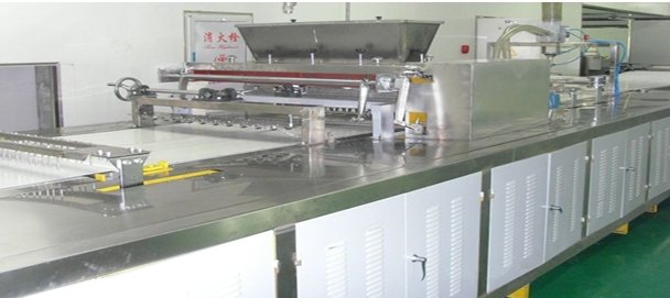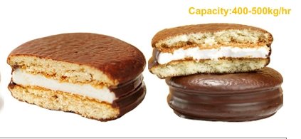 Full automatic production line of Sandwich cake pie is composed of molding, baking oven, cooling