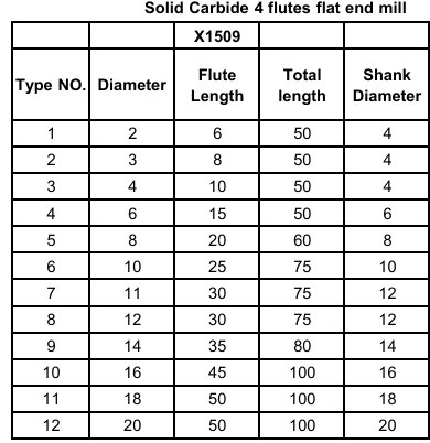Solid Carbide 4 flutes flat end mill